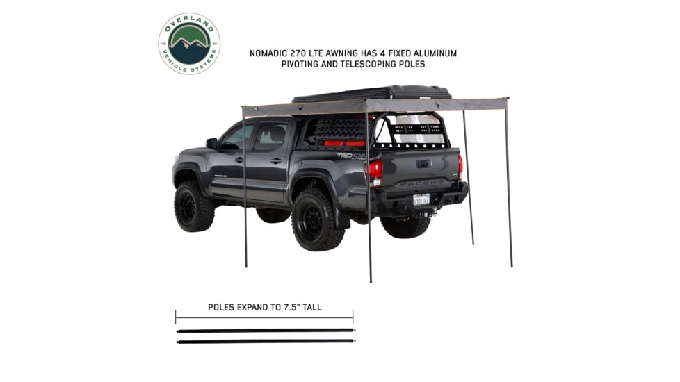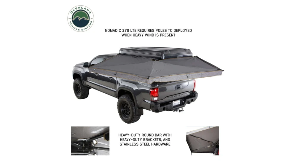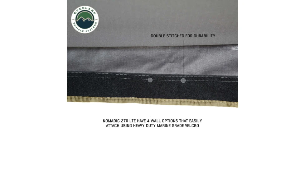 The Overland Vehicle Systems Nomadic 270LTE Awning is an excellent choice for anyone looking for a high-quality, durable awning. With its 270-degree coverage, this awning provides plenty of shelter for you, your family, or friends. We’ve taken our best in class Nomadic 270 Awning, Nomadic 270LT Awning, Nomadic 180 Awnings and tweaked a few things to design the Nomadic 270LTE Awning for customers that need a lighter and more compact design without sacrificing functionality. Whether you’re an experienced Overlander, Camper, Outdoors Enthusiast, Adventurer or just getting started, the Overland Vehicle Systems Nomadic 270LTE Awning is an excellent choice for you.![]()