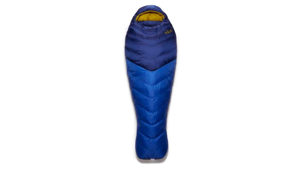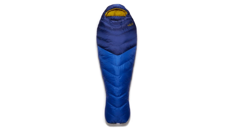 The Neutrino 400 is filled with 400g of 800FP, goose down, stabilised in chevron shaped baffles, cleverly designed to reduce the amount of fabric needed compared to traditional horizontal baffles. The trapezoid boxwall baffle construction allows the down to fully loft, eliminates cold spots, and maximises warmth. Additional baffles along the length of the zip and around the neck decrease heat loss, and with an adjustable drawcord around the hood you can cinch the bag around your face.