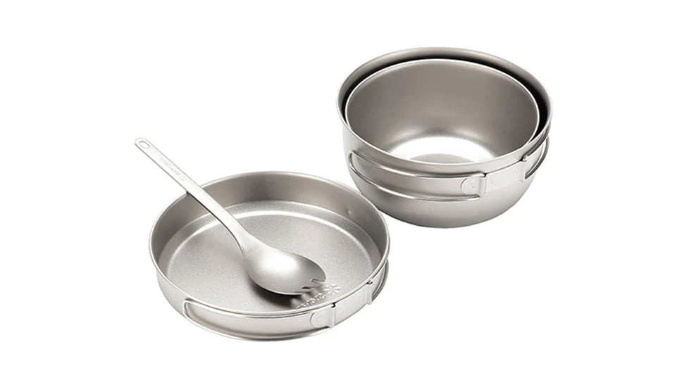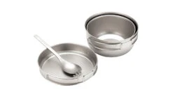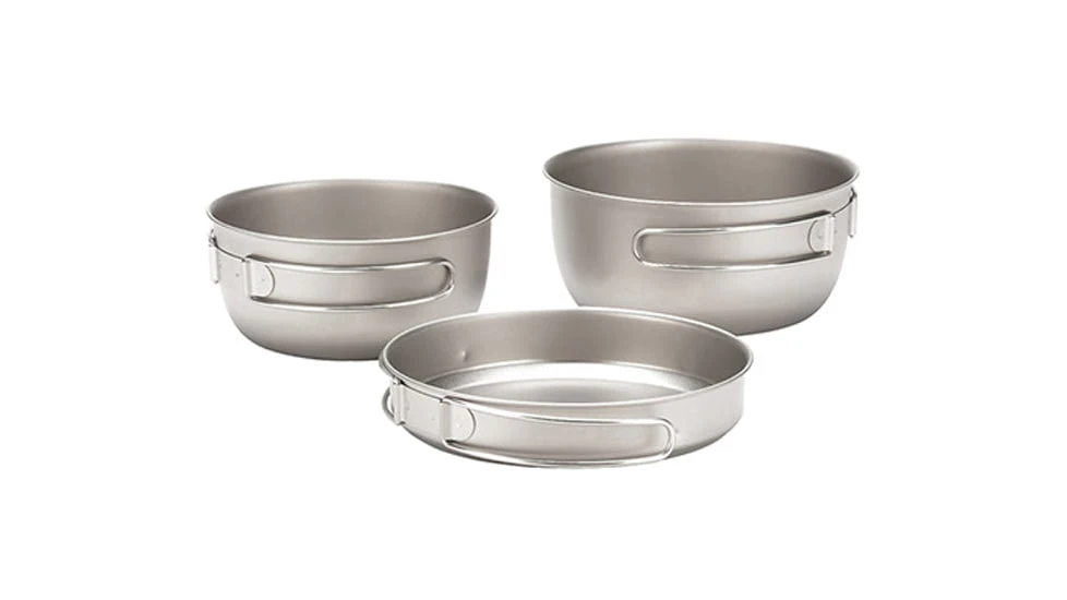 These 3-Piece Titanium Cooksets are some of the best backpacking cookware available on the market today. Snow Peak’s 3-Piece Titanium Cook Set includes a small pot, large pot, and frying pan (that also functions as a lid for the pot(s). The foldable handles and nesting design of the three pieces make them compact, and the total weight of 7.1 oz (200 g) makes them an ultralight solution for getting your camp kitchen into the backcountry. Pair the 3 Piece Titanium Cookset with the LiteMax Titanium Stove for a backcountry setup.![]()