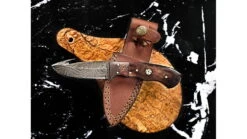 Titan Damascus Steel Gut Hook Skinning Knife, 4in